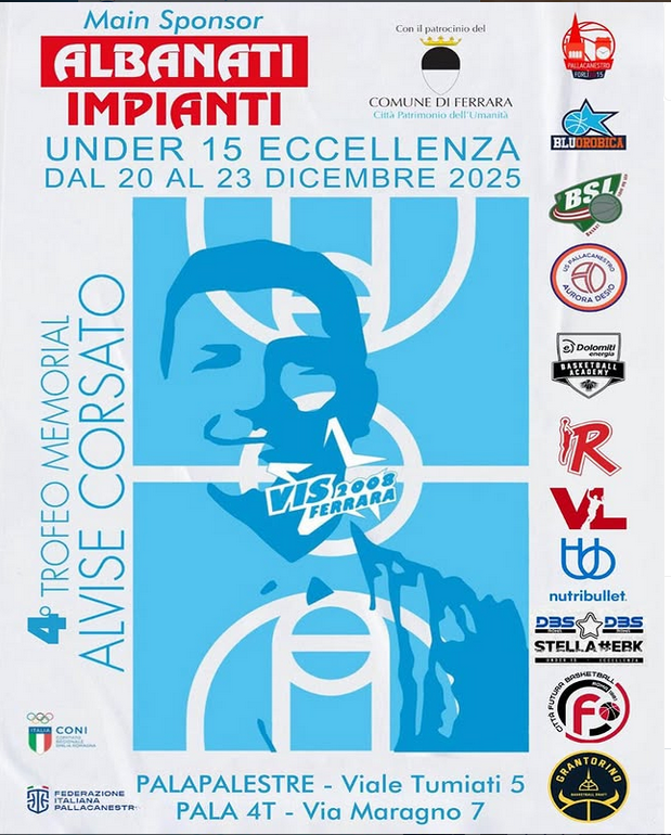 Importante appuntamento pre-natalizio per la nostra squadra Under 15, che dal 20 al 23 dicembre parteciperà al Memorial Corsato di Ferrara, giunto alla sua quarta edizione e organizzato con grande cura dalla Vis Ferrara 2008.